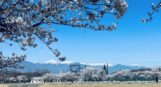 アルプスを背景にした薄川の美しい桜を、今年も存分に堪能しています。